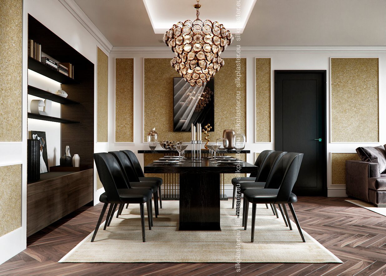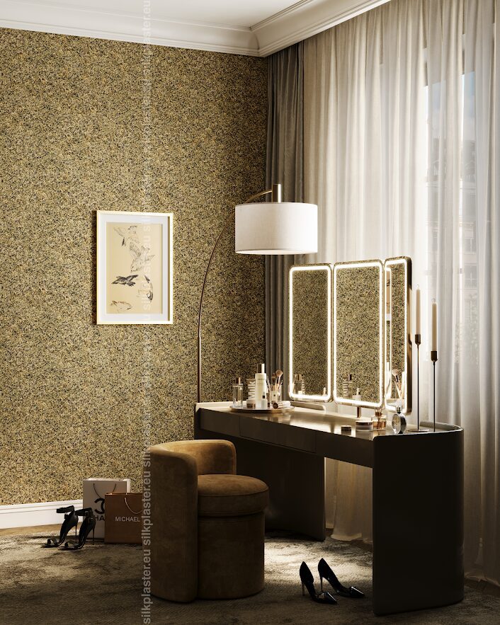 Жидкие обои «Версаль» — простое, но роскошное дополнение, которое украсит ваше пространство. Эти обои, наполненные богатством золотых и серебряных листьев, придадут вашим стенам сдержанную элегантность. Нежное мерцание и органичная текстура листьев создают гармоничную игру света, придавая любому помещению нотку роскоши. Легко преобразите свой дом с помощью «Версаля», где утонченная красота золотых и серебряных листьев создает атмосферу изысканности и вневременного очарования.
