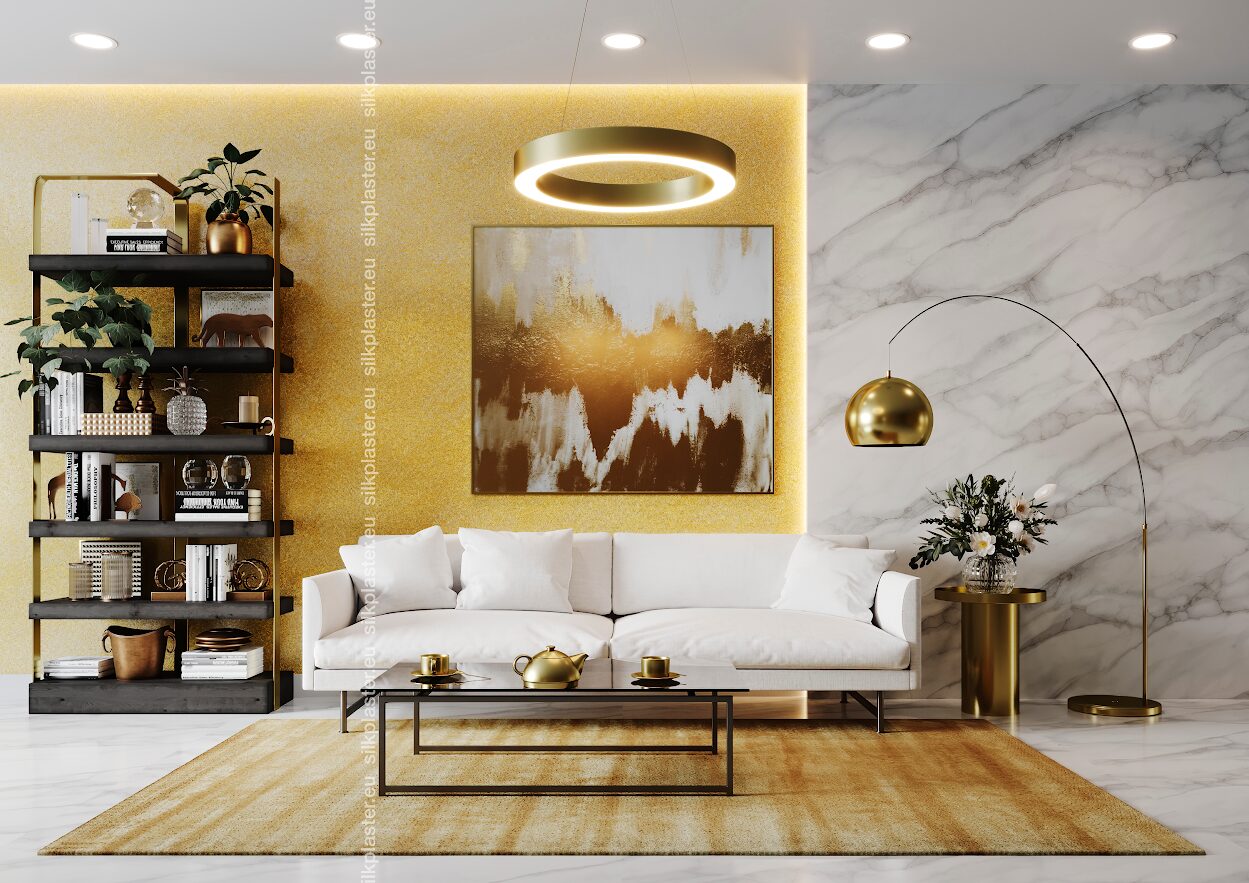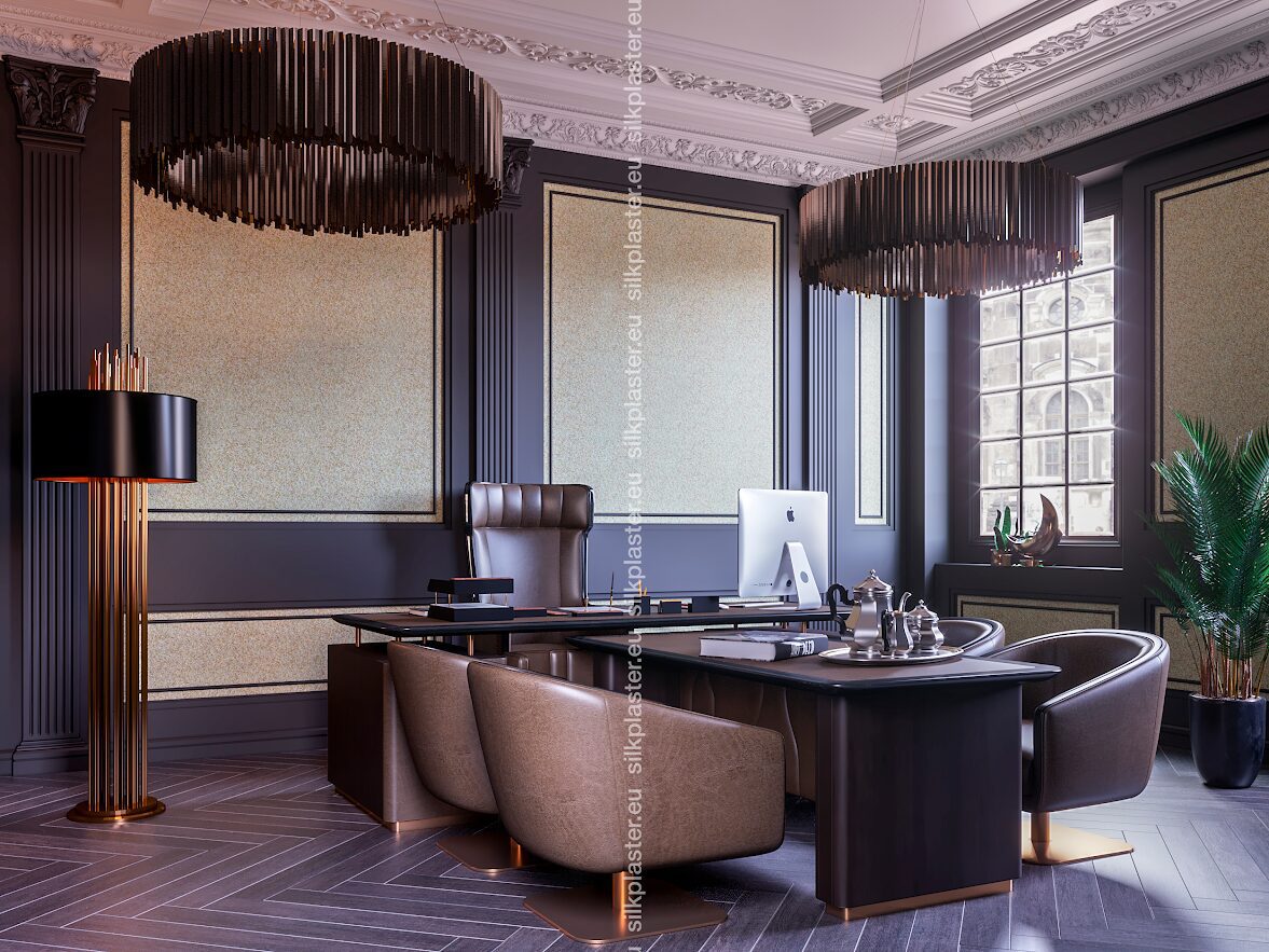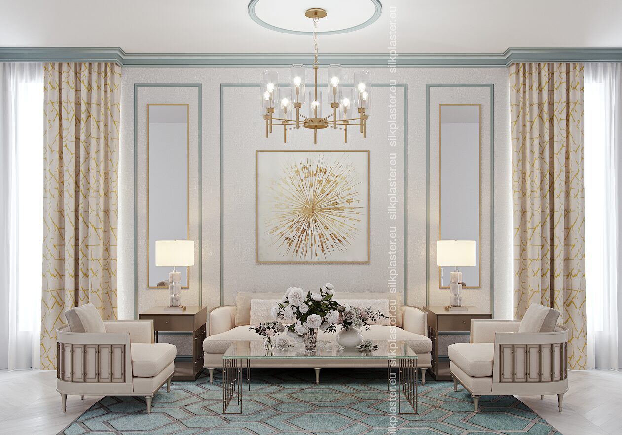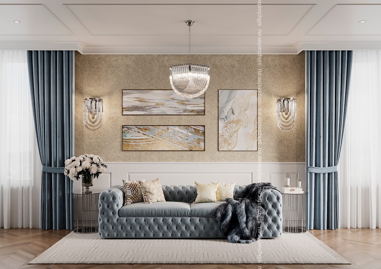 Жидкие обои «Версаль» – нотка роскоши для ваших стен. Эти обои имеют простой, но элегантный дизайн и украшены золотыми и серебряными декоративными акцентами, которые придают вашему пространству легкое сияние. Преобразите свой дом легко, привнеся нотку роскоши и изысканности в каждую комнату.