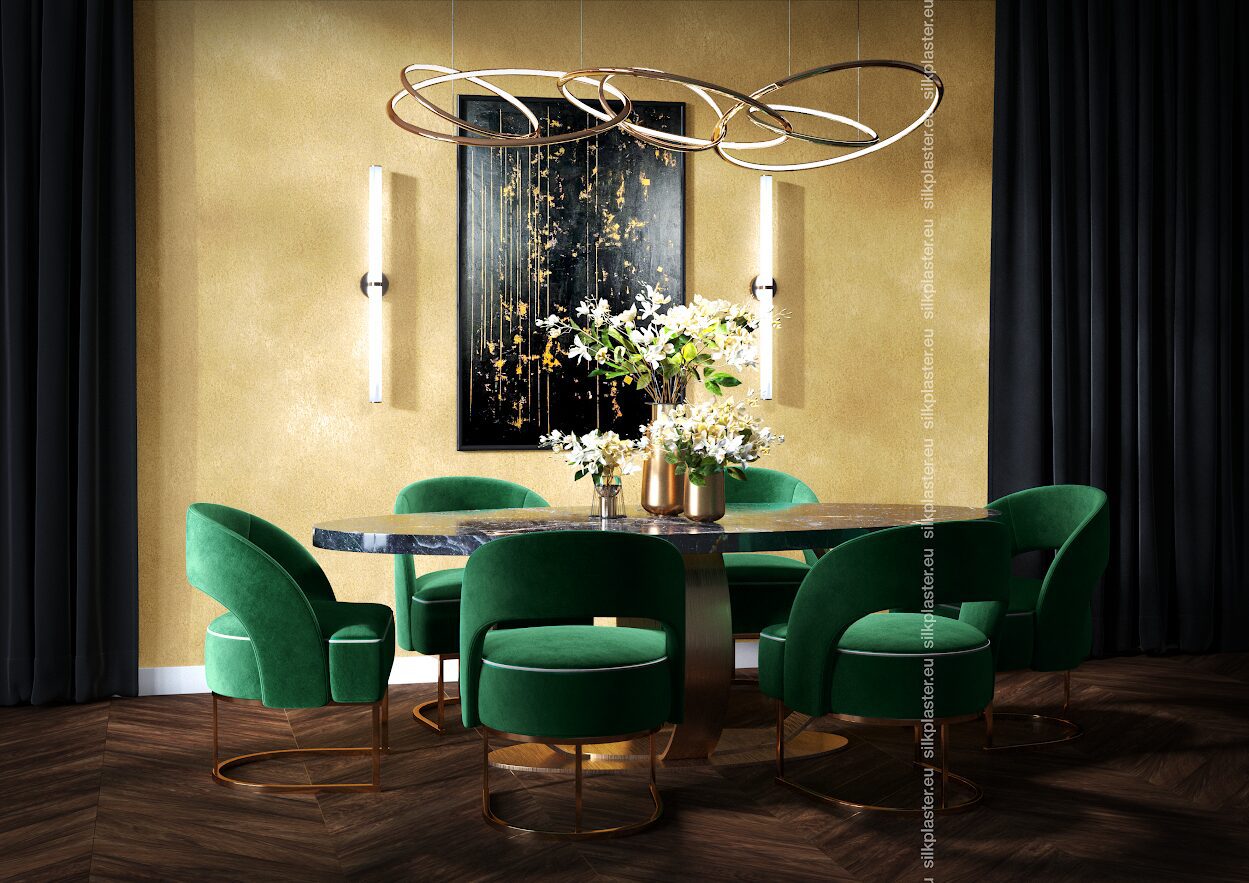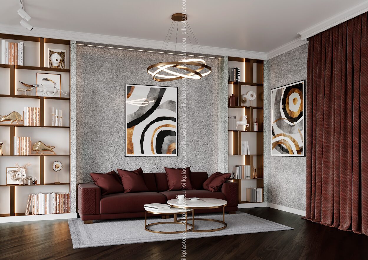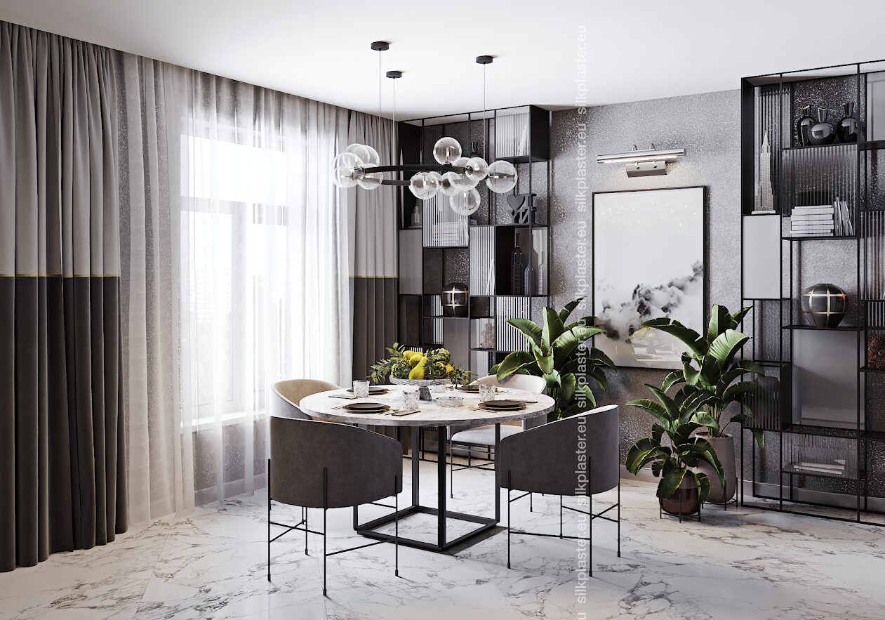 Жидкие обои «Версаль» – нотка роскоши для ваших стен. Эти обои имеют простой, но элегантный дизайн и украшены золотыми и серебряными декоративными акцентами, которые придают вашему пространству легкое сияние. Преобразите свой дом легко, привнеся нотку роскоши и изысканности в каждую комнату.